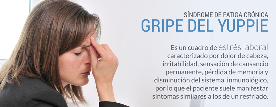 (Gripe del yuppie) Esta afección hace referencia a un cuadro de estrés laboral caracterizado por dolor de cabeza, irritabilidad, sensación de cansancio permanente, pérdida de memoria y disminución en la capacidad del sistema de defensas contra enfermedades (inmunológicas), por lo que el paciente suele manifestar síntomas similares a los de un resfriado.