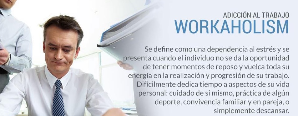 Se define como una dependencia al estrés y se presenta cuando el individuo no se da la oportunidad de tener momentos de reposo y vuelca toda su energía en la realización y progresión de su trabajo; difícilmente dedica tiempo a aspectos de su vida personal: cuidado de sí mismo, práctica de algún deporte, convivencia familiar y en pareja, o simplemente descansar.