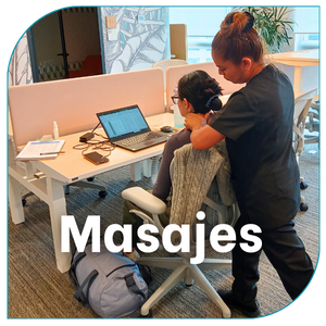 Masaje de 5 minutos en el lugar de cada persona, enfocados para la liberación de tensión en antebrazos, manos y dedos.
